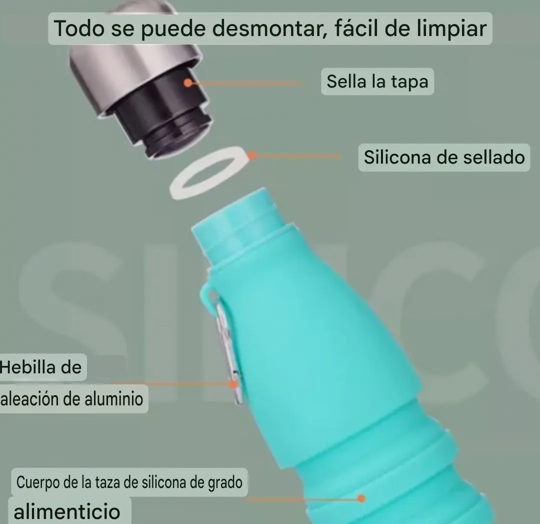 ? Material premium: Cuerpo de silicona libre de BPA y tapa en plástico/metal para mayor resistencia.