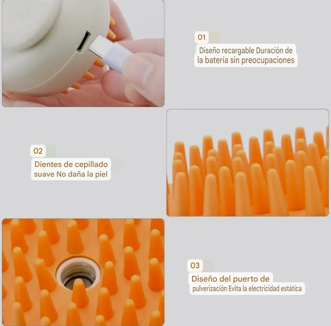 ? Tecnología a vapor de última generación: El vapor afloja y remueve fácilmente el polvo, la suciedad y los nudos del pelaje sin irritar la piel. Ideal para mascotas con pelaje largo, enredado o sensible.