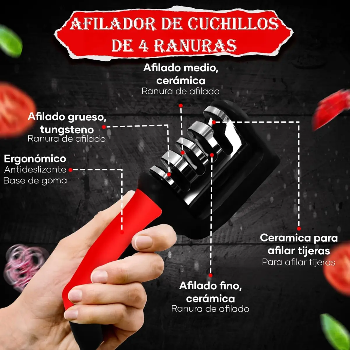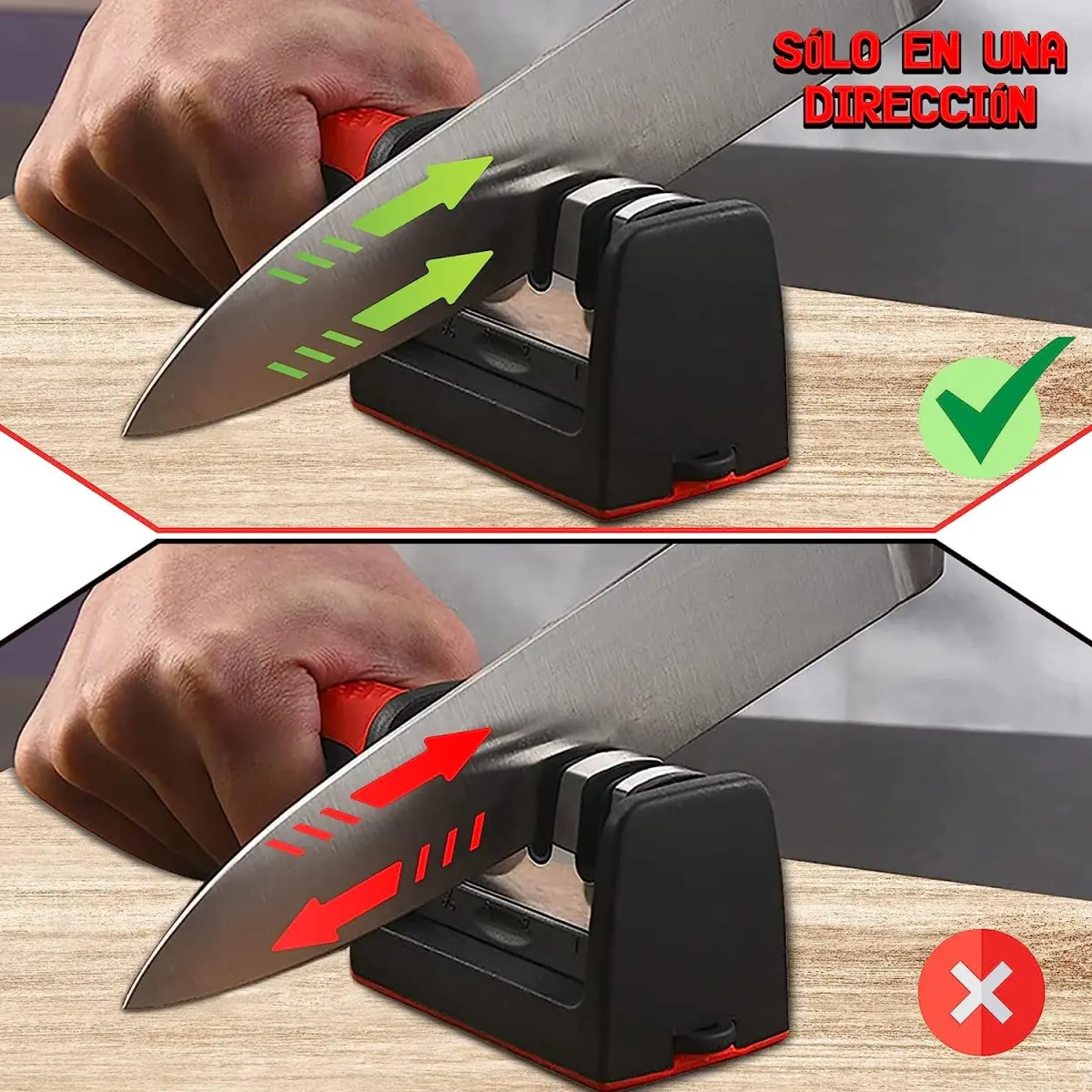 Ideal para el uso doméstico o profesional, este afilador prolonga la vida útil de tus cuchillos y mejora la precisión de cada corte.