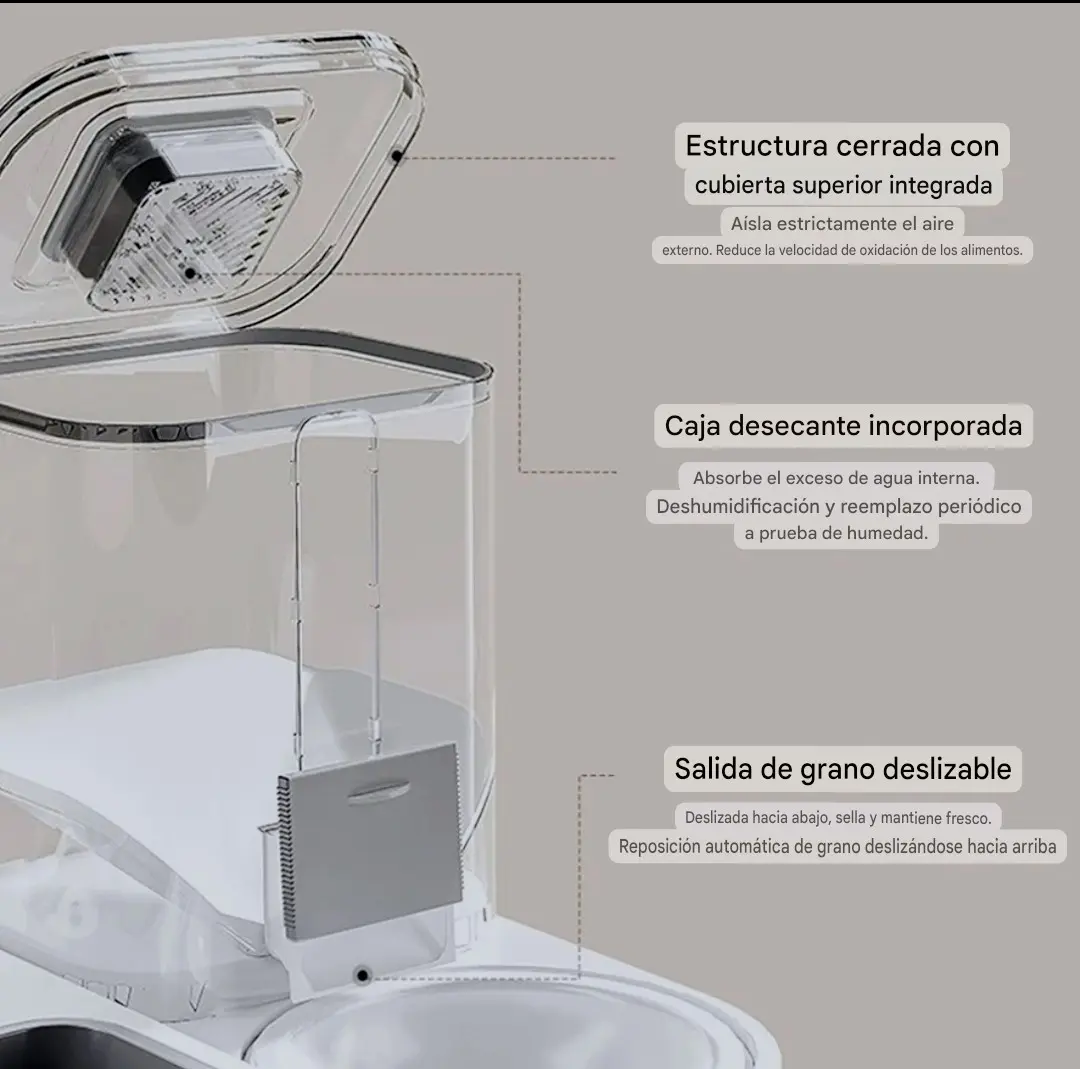 ? Ventana transparente: Permití un control visual rápido del nivel de alimento, para que nunca falte lo esencial.