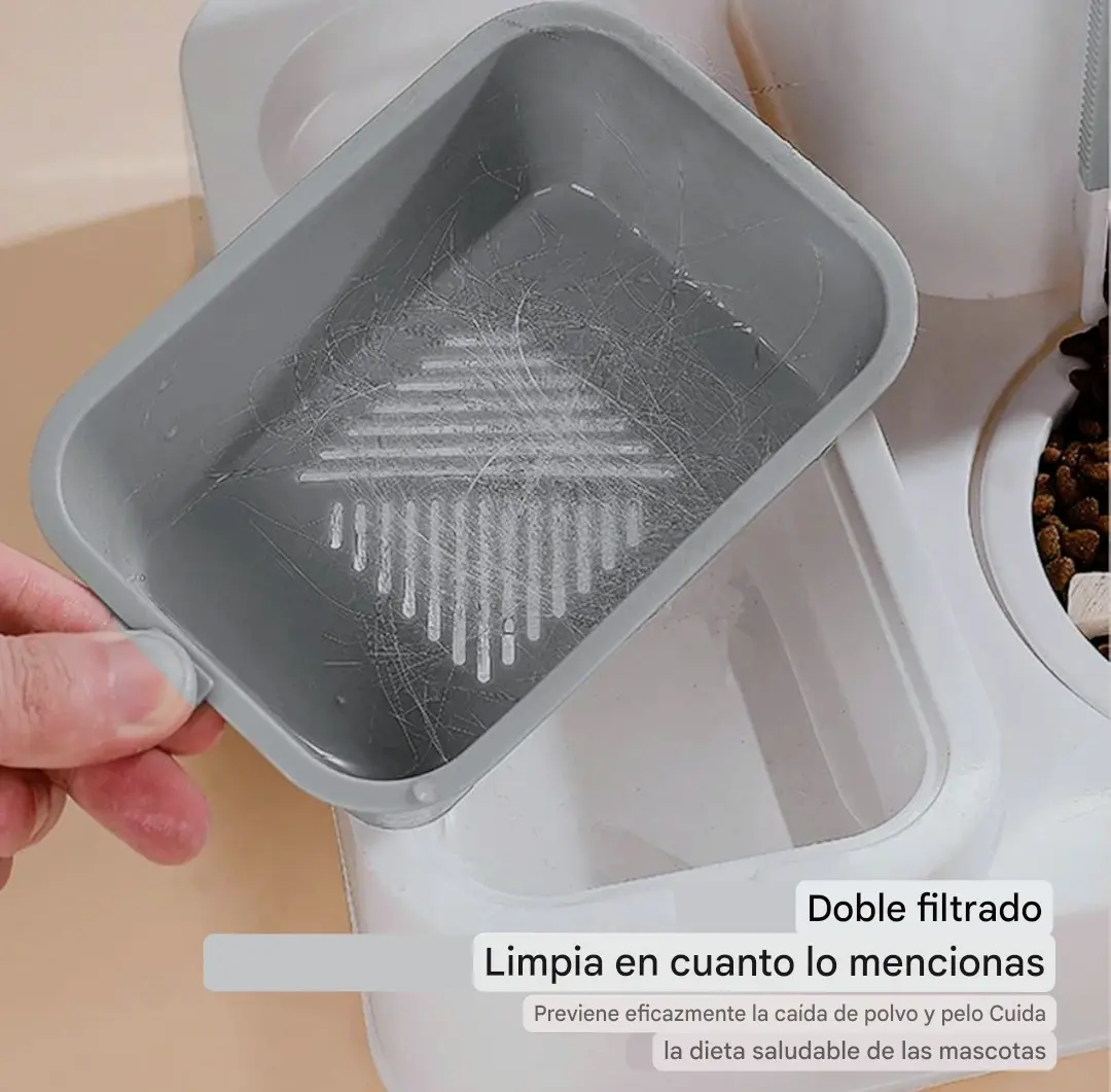 ? Separación seca y húmeda: Su exclusivo divisor evita que la boca de tu mascota se moje al beber, garantizando mayor higiene y comodidad.