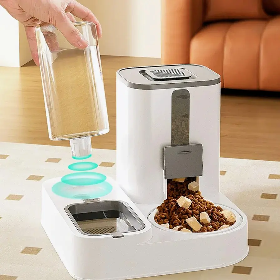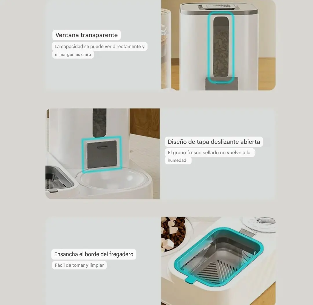 ? Sistema inteligente por gravedad:Garantiza el flujo automático de agua y alimento solo cuando tu mascota lo necesita, manteniéndolo fresco en todo momento y fomentando una rutina saludable.