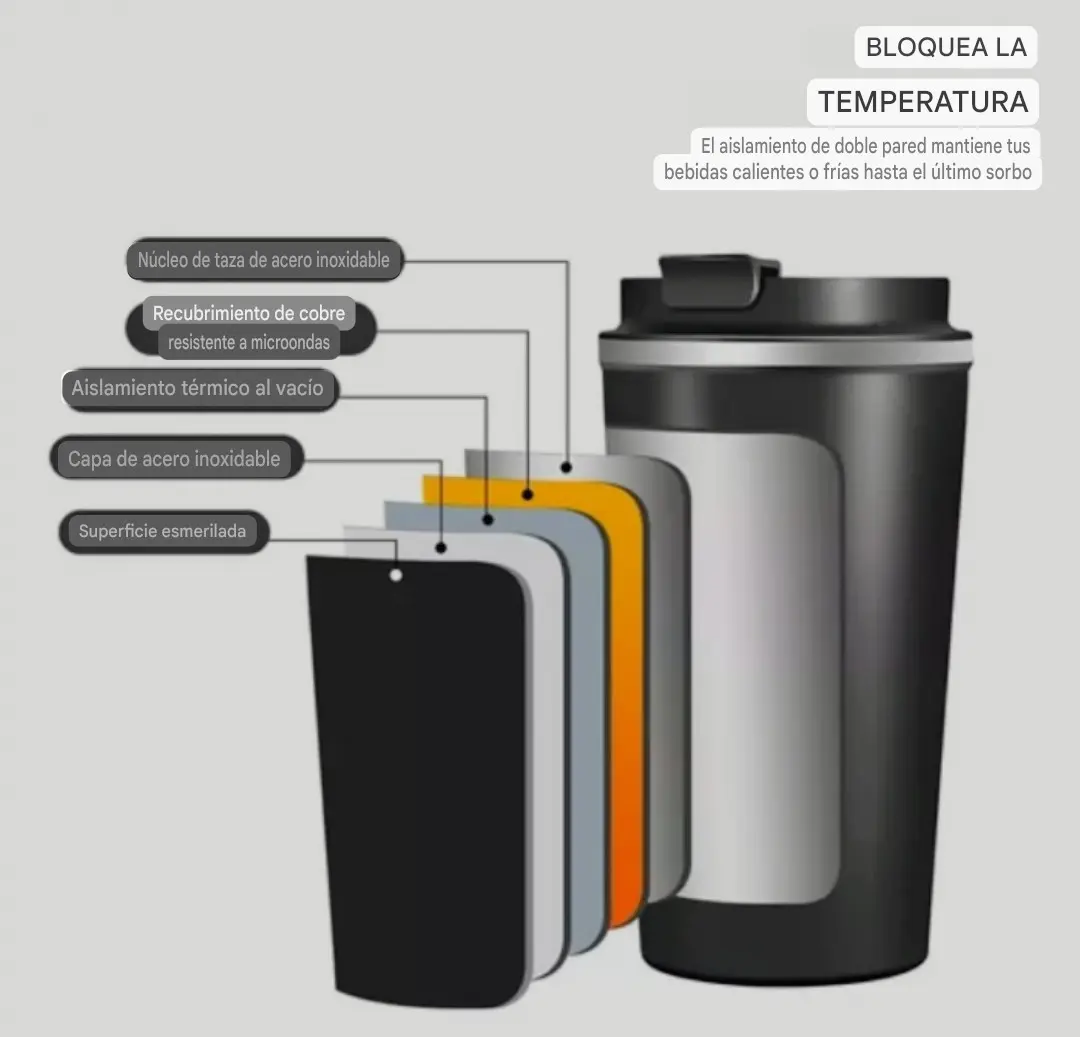 ? Aislamiento de doble pared: Mantiene bebidas calientes por 8-12 horas o frías por 12-24 horas.